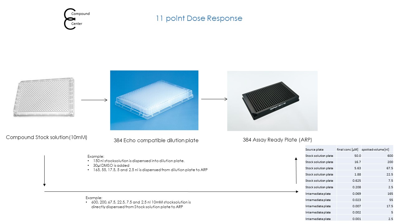 To understand what Compound Center need from user to create an 11-point assay ready plate for doseresponse, please have a look at the procedure.